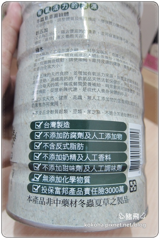 高纖無糖的粉狀內容物用了22種天然成分製造,如上面圖片的說明