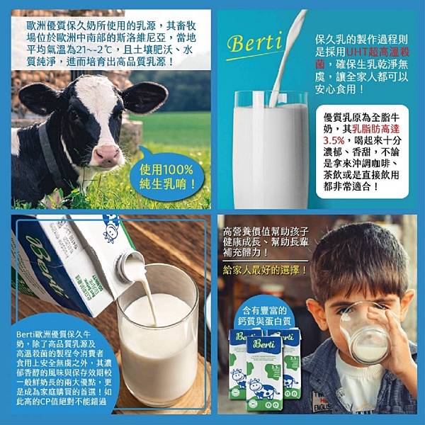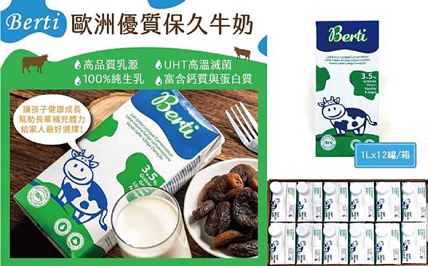 1.歐洲Berti優質牛乳1000ml/12罐 (限20組)